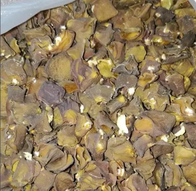 去皮就是去掉欖錢表層硬皮,也可以看作是欖錢的殼。將欖錢放入鍋中,加入漫過欖錢的水煮熟,就跟煮粥差不多,燒開不久后應該就可以了。煮熟后的欖錢表皮看起來有一種破裂的感覺。欖錢煮熟后撈起來倒進一個比較大的盆中,加入大量清水浸泡一會。接著用手捏或者搓盆里的欖錢,把欖錢的表皮去掉,由于皮比較輕,脫落的皮會浮在水中,把皮撈起來扔掉,盡量去皮去的干凈,不過有些許殘留也是可以的。欖錢剛摘回來的時候是這個樣子的。