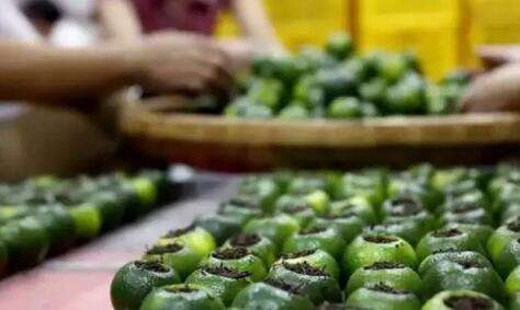 柑橘采收期可分為青皮、黃皮和紅皮期,其中,黃皮和紅皮的果實(shí)是成熟的,而小青柑是用尚未成熟的果皮加工而成,雖然這時(shí)的柑橘仍很青澀,但其揮發(fā)油含量高,橙皮苷含量高,清熱殺菌的作用明顯,經(jīng)加工后配以合適的普洱熟茶,成就了小青柑茶,然而高品質(zhì)的小青柑從選果到制作、烘干、儲藏都是極有講究的。