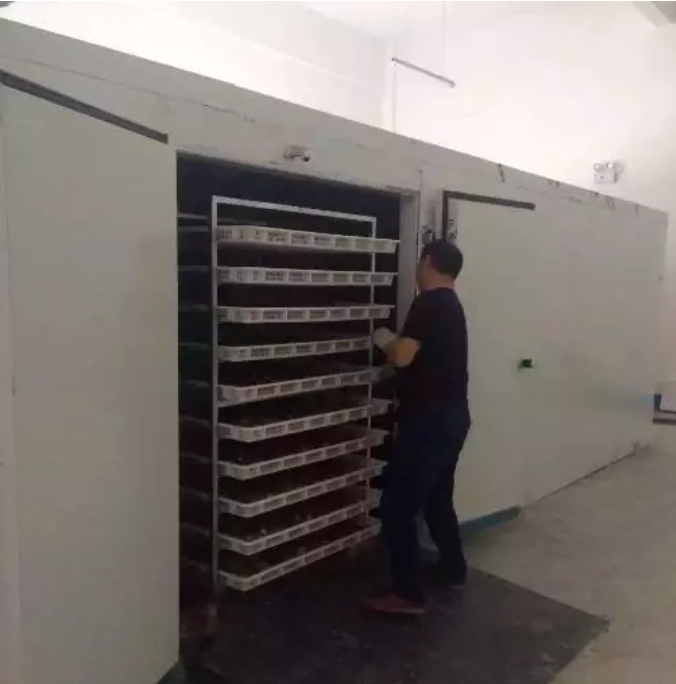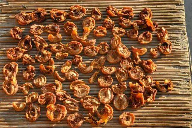 將裝有杏片的料筐或竹簾送入烘房內(nèi),放在貨架上,然后將門窗嚴密封閉,烘烤約 2h,待果片呈黃色半透明狀時,再將烘房打開。當空氣充分交換后,將杏片挪到室外晾放 1-2h,然后進行干燥。 2.4、烘干 將經(jīng)過烘干的杏片,送入烤房,一層層排放在木架上,然后關閉門窗,生火輸熱進行烘干。開始的 4-6h 內(nèi),室溫保持在 40-50℃然后逐漸升高到 70-80℃。隨著杏片所含水分的蒸發(fā)和室內(nèi)濕度的增高,應及時將門窗和通風孔打開,排除水蒸氣,并根據(jù)室內(nèi)干濕度及杏片干燥程度掌握關閉時間。在烘干過程中,應將烤架上下層的杏片加以調換,使其受熱均勻,爭取同一批次原料同時烘干。烘干時間一般為 24-36h,如溫度濕度掌握不當,則會延長烘干時間,這樣的產(chǎn)品色澤不佳,品質低劣,成品杏干的質量要求是橙黃色,柔軟,不粘手,呈半透明狀,大小均勻,形狀整齊,具有濃郁的酸甜風味,含水量不高于 18%。