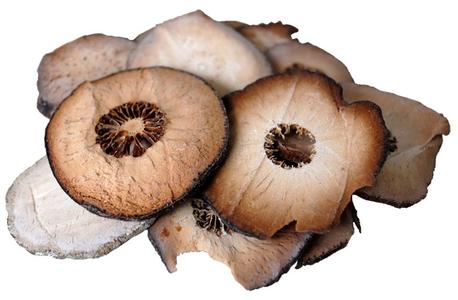壓片:將潤后的藥材用輾壓機壓扁兩次,第一次壓片厚約為7~8mm,自然風干約3小時,進行第二次壓片。第二次壓片厚度約為3~5mm。