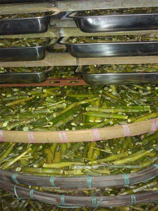 1、石斛全年各季度均可采收,以11-4月為石斛采收期,考慮到維生素及藥性成分,采收時(shí)以生長(zhǎng)約2-3年的石斛莖干為宜,隨后修剪去除莖干上多余的根須、葉梢和花序殘留部分,留下的石斛鮮條洗凈后攤放在通風(fēng)陰涼處。