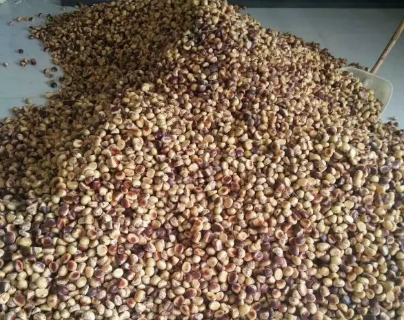 新采收的板栗,水分含量高,可溶性糖含量低,特別是里面的澀皮難以剝離,如直接加工風(fēng)味不佳,并且影響產(chǎn)品質(zhì)量。經(jīng)預(yù)處理后,栗果內(nèi)的部分淀粉轉(zhuǎn)化為可溶性糖,并散失掉部分水分,相對地使可溶性物質(zhì)的含量增加,風(fēng)味轉(zhuǎn)好。處理方法是將新采收的板栗放于室內(nèi),厚度4~5cm,每天翻動2~3次,堆放4~5天即可。