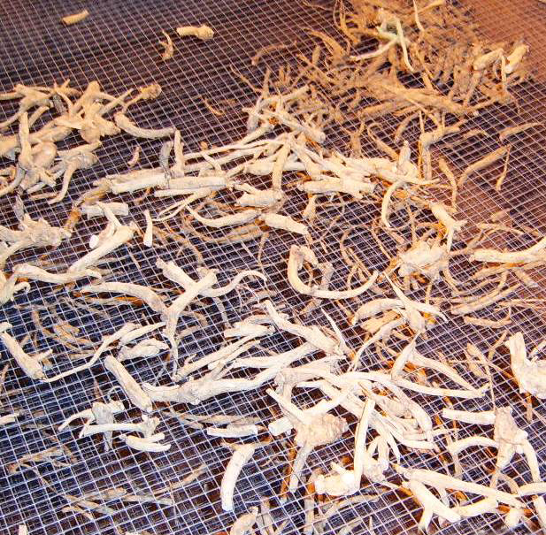 2、下須:加工生曬參,只要求保留蘆、體和粗細勻稱的支根的中上部,其它艼、須全部掐掉,從須根基部4~5mm處下須。大支根截斷部位要適中,不得留的過長。 全須生曬只是去掉主體中上部的細須根和過于粗大的,其它部位不下須 。