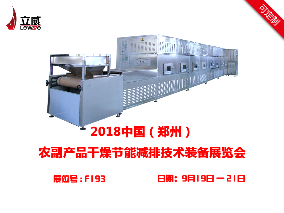 受2018中國(鄭州)農(nóng)副產(chǎn)品展覽會組委會的盛情邀請,山東立威微波設(shè)備有限公司將于9月19-21號赴鄭州參加2018中國(鄭州)農(nóng)副產(chǎn)品節(jié)能減排技術(shù)裝備展覽會,本次展會歷時三天,預(yù)計本次展會將吸引數(shù)十萬全國各地客商前來參展訂購。